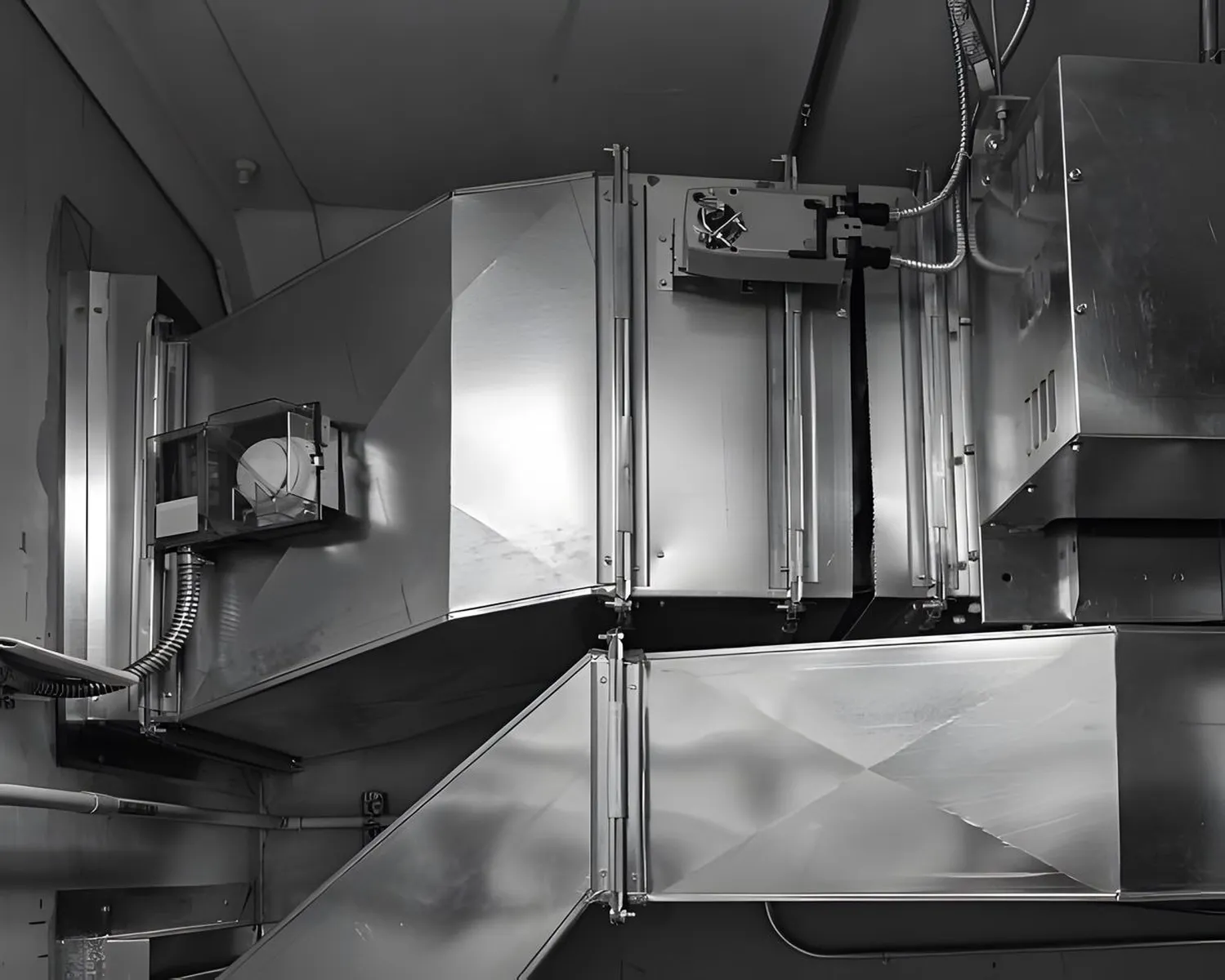 Planificamos e instalamos dampers corta fuego en ductos de extracción industrial.